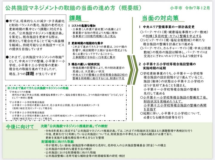 公共施設マネジメントの見直し―中央エリアの別棟の建設中止と小平第13小学校等複合施設建設時期の延期について―